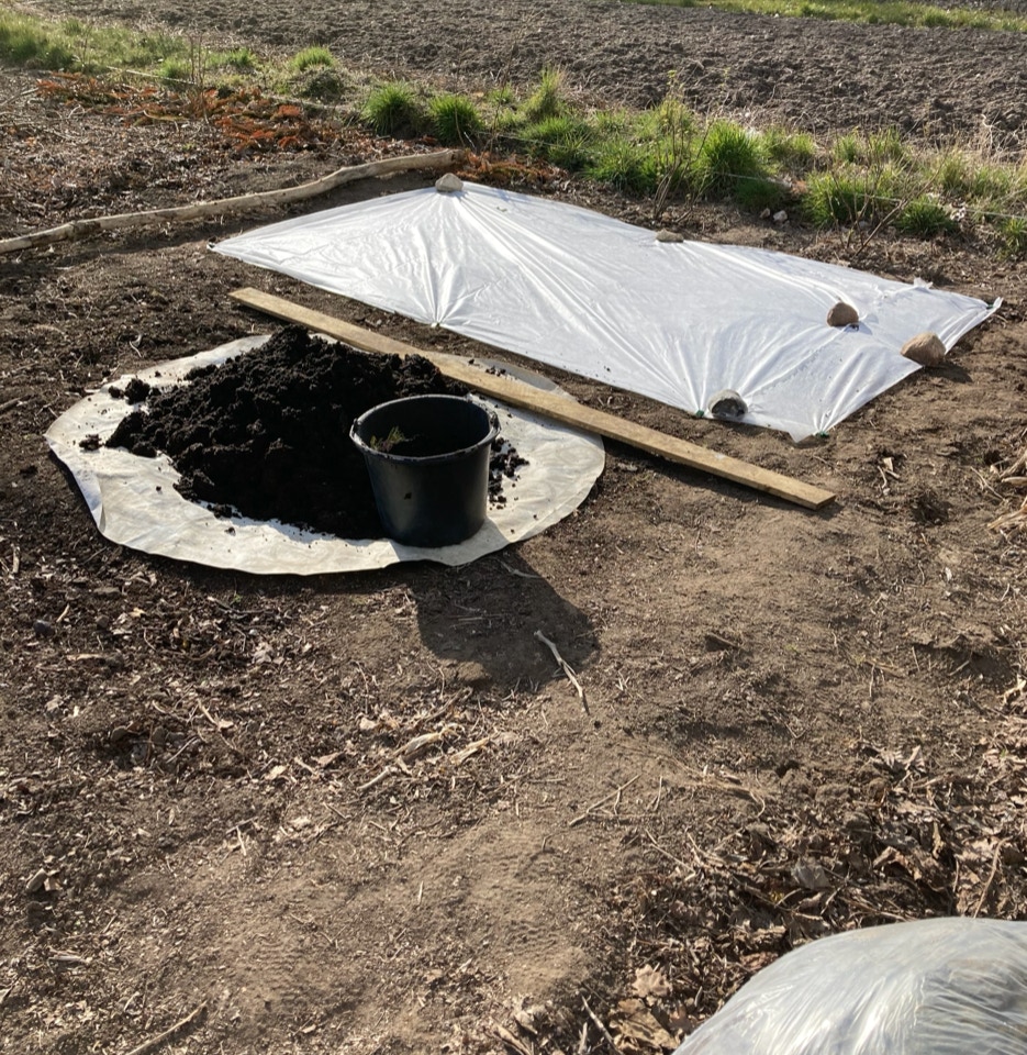 1 pose halvomsat bladkompost til jorddække mod tab af fugt