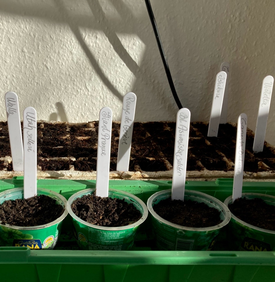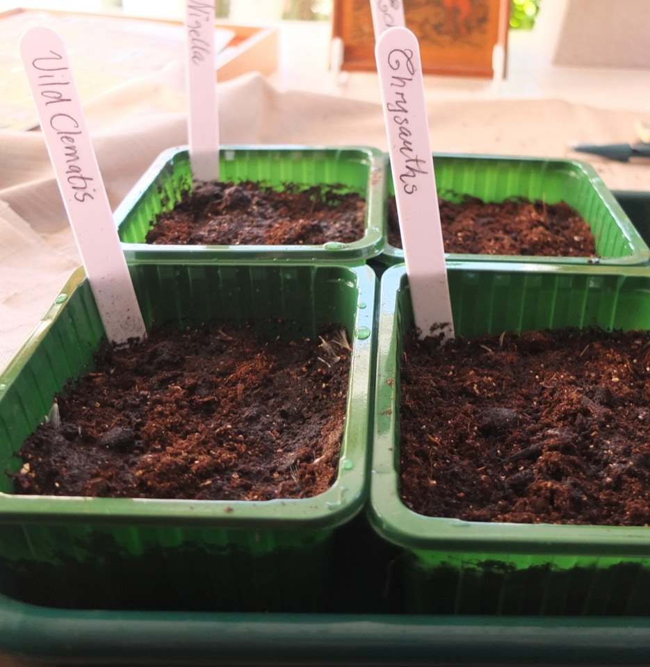 Blomsterfrø sået: Clematis, Crysanth, Nigella og Echinacea