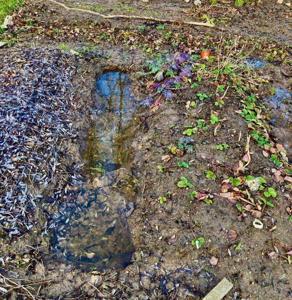 Stående vand mellem højbedene - aldrig oplevet tidligere