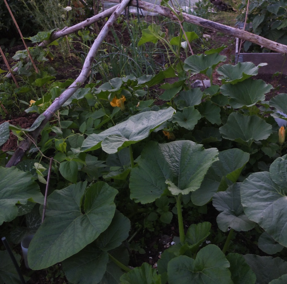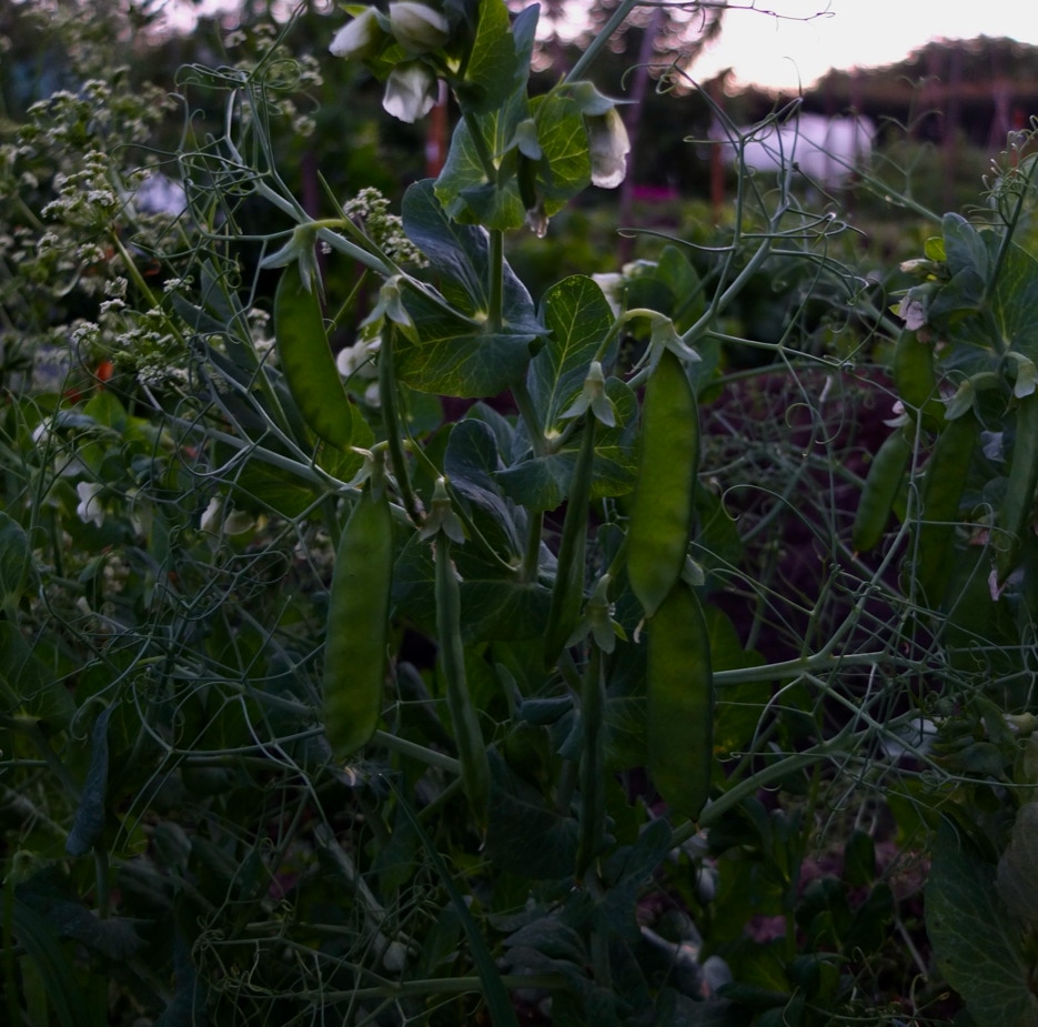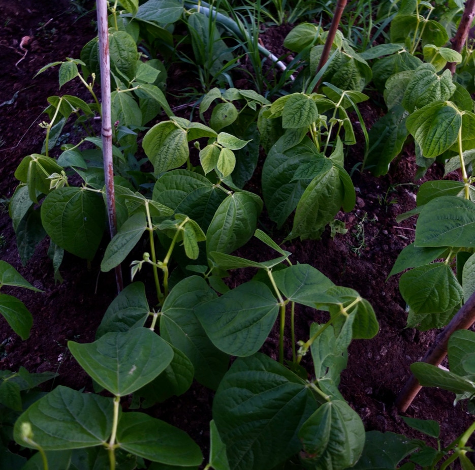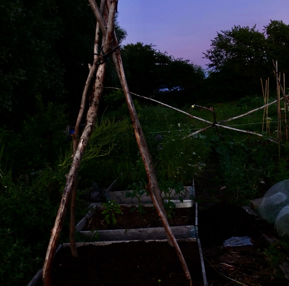 Bønnetårnet med slyngbønner på vej
