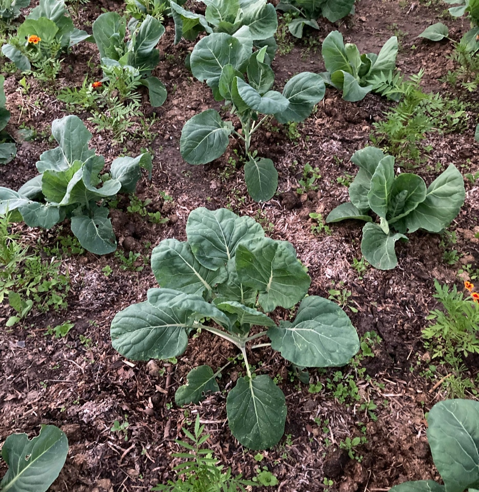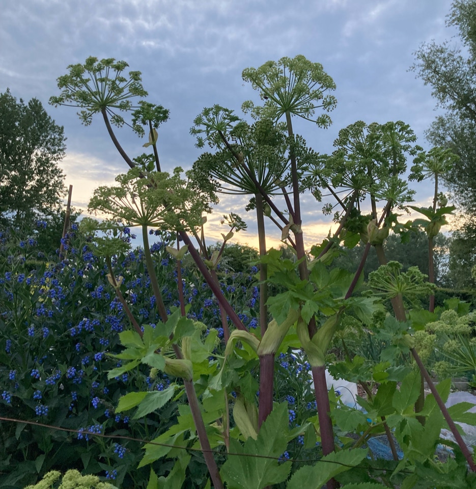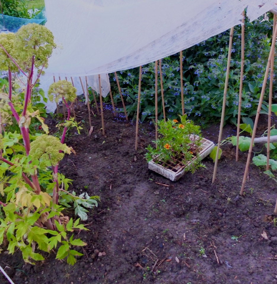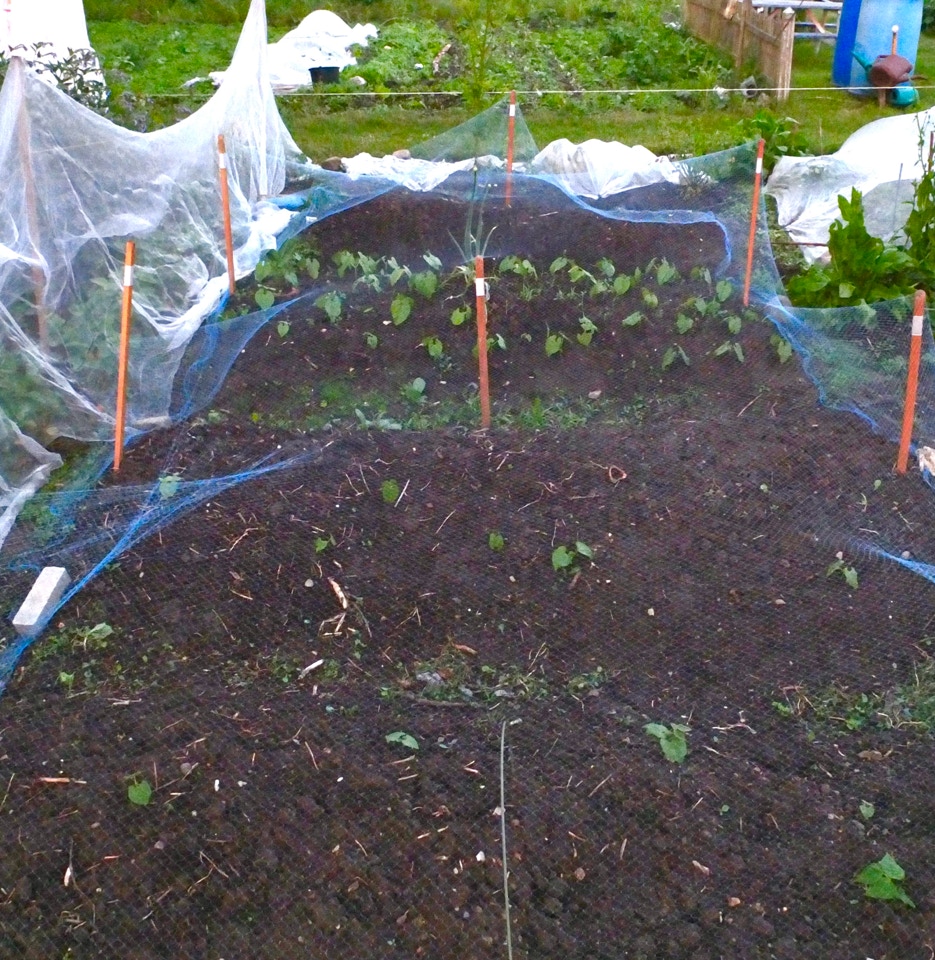 Bønnetårne og kartofler og skalotteløg i forgrunden