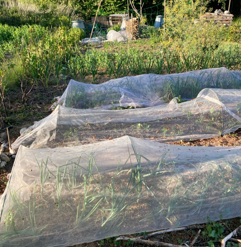 Løg, gulerødder, hvidløg, ærter og majs beskyttes med div. dække
