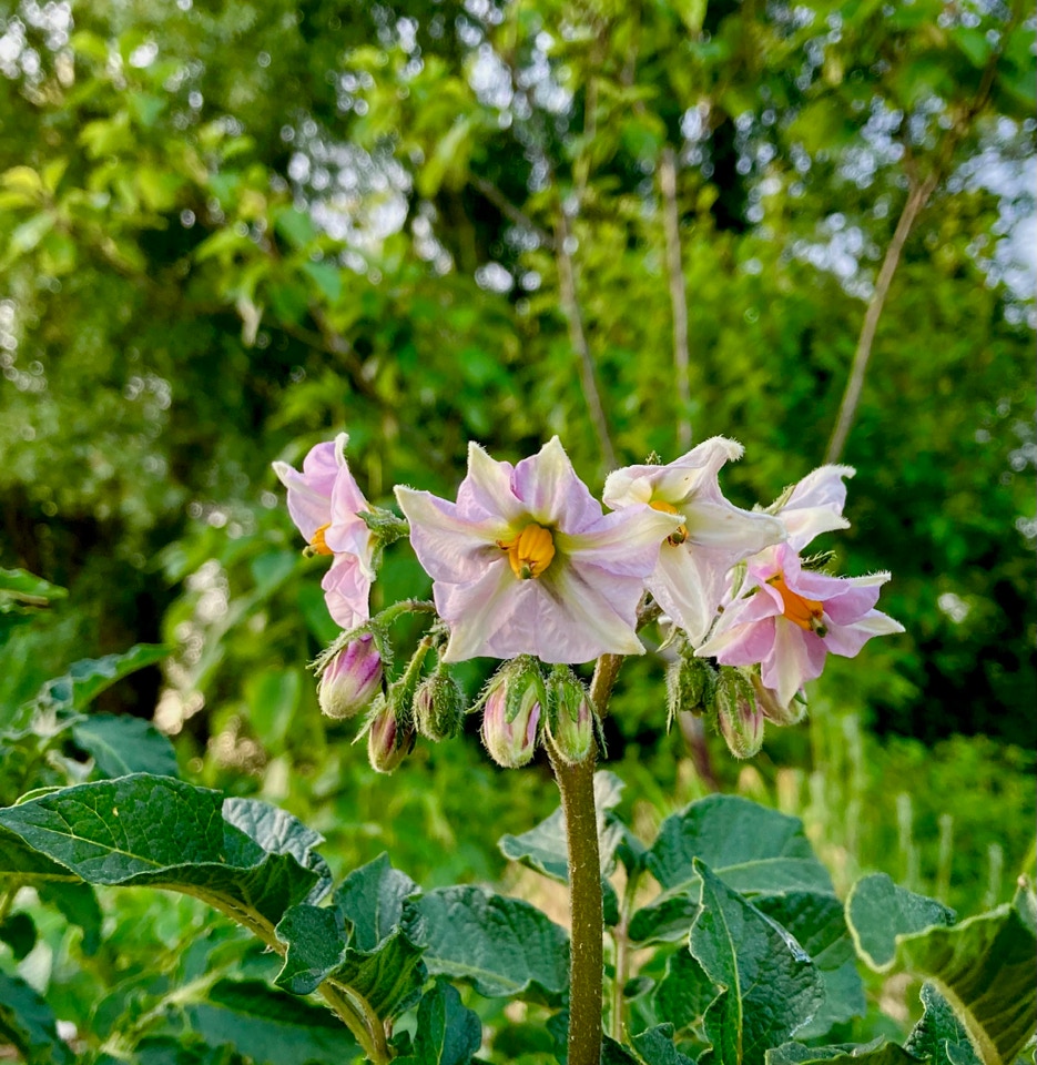 Kartofler dækket med blade, græsafklip og kompost mod udtørring