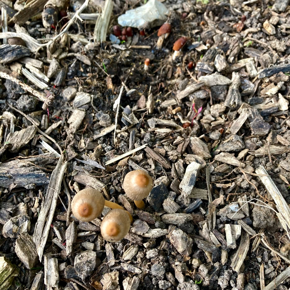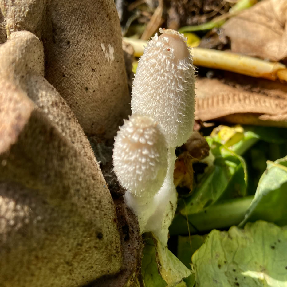 Fin lille møddingblækhat (Coprinopsis cinerea) på kompostjord