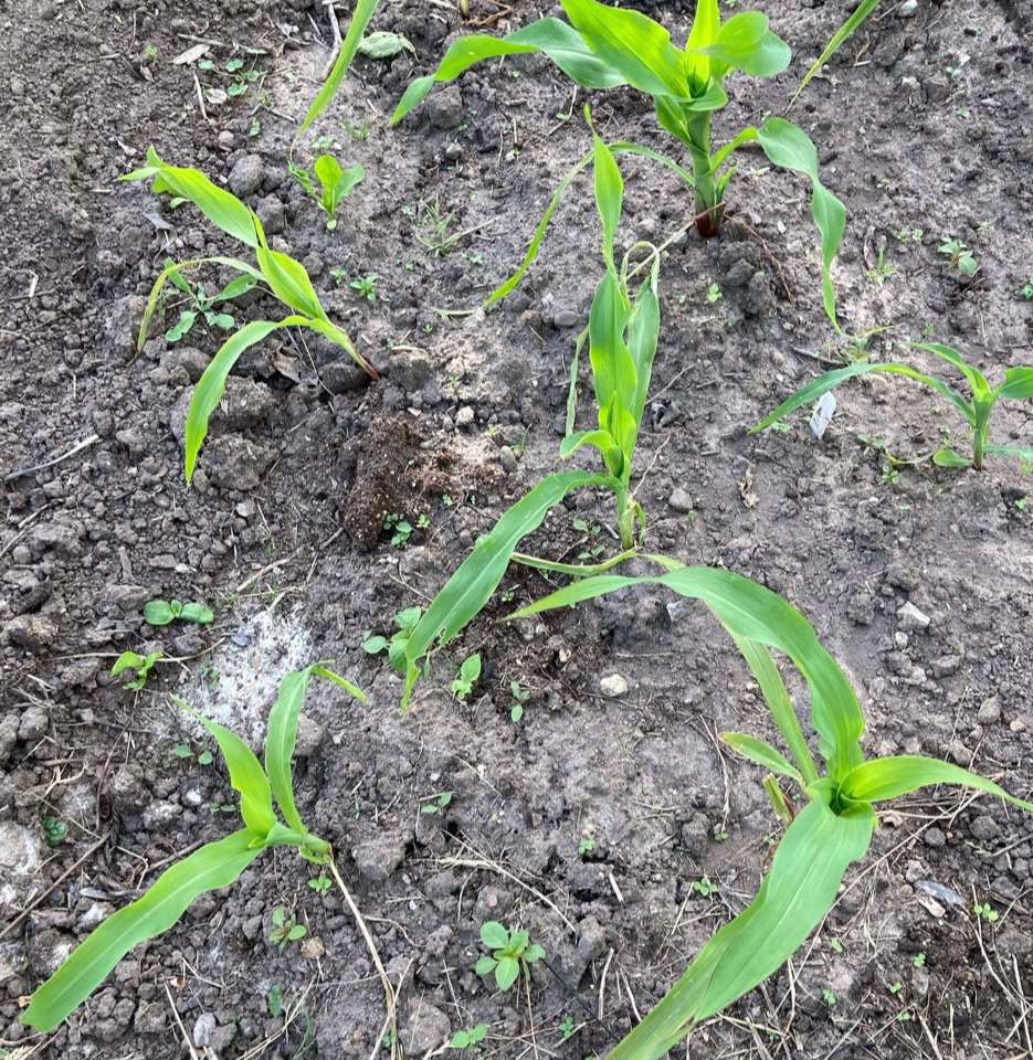 Endelig slår majsplanterne rod - Нарешті кукурудза пустила коріння